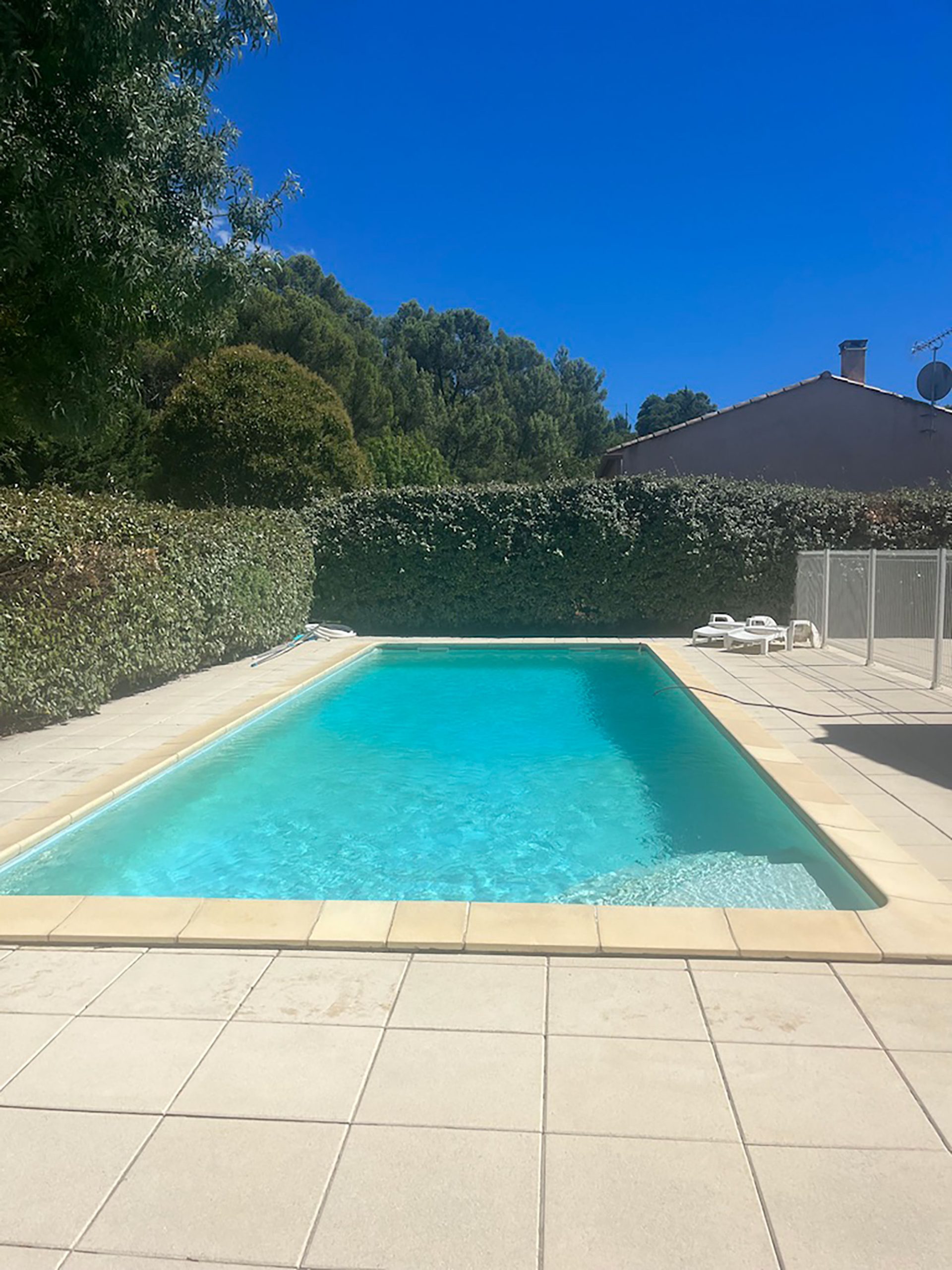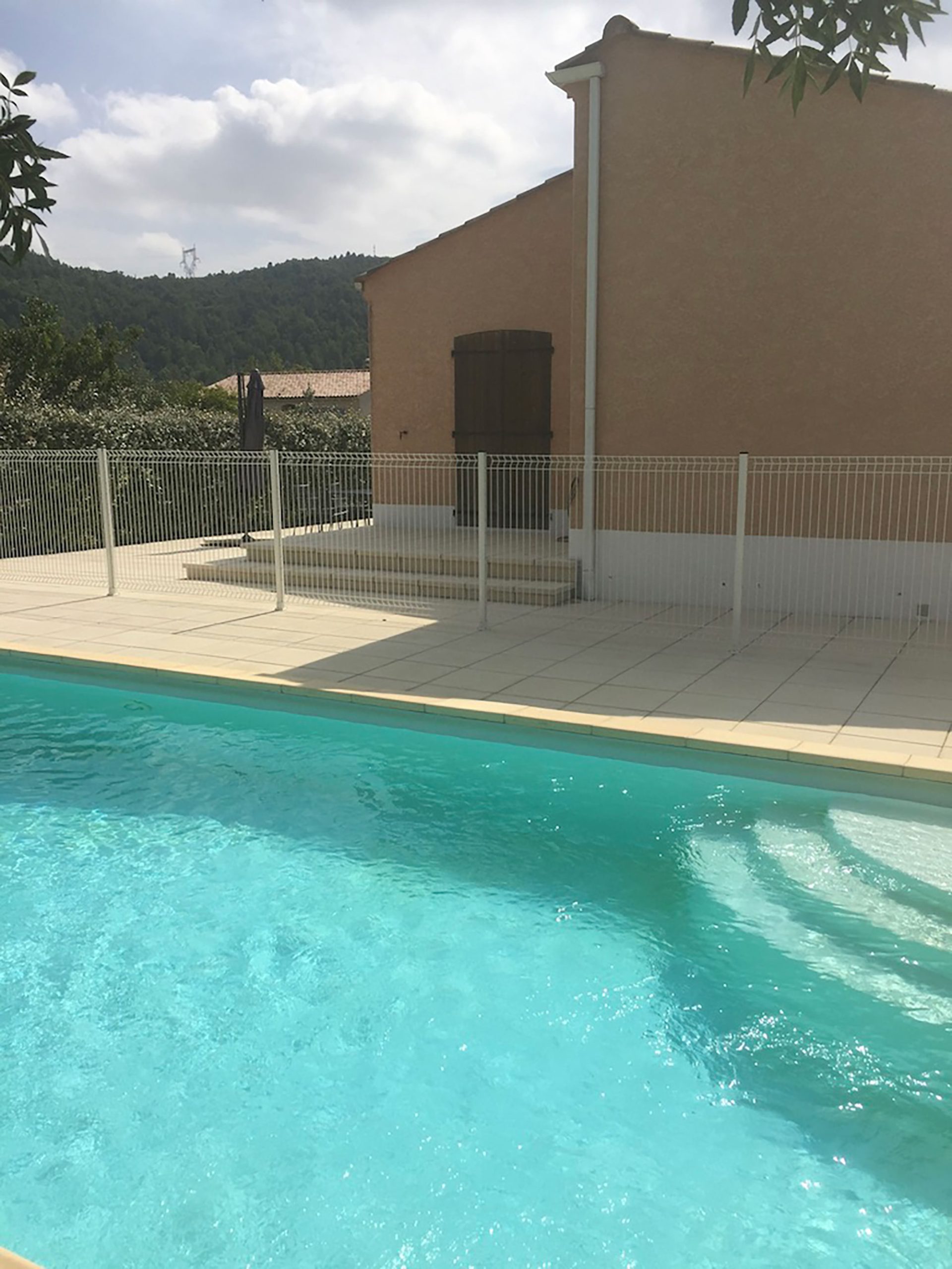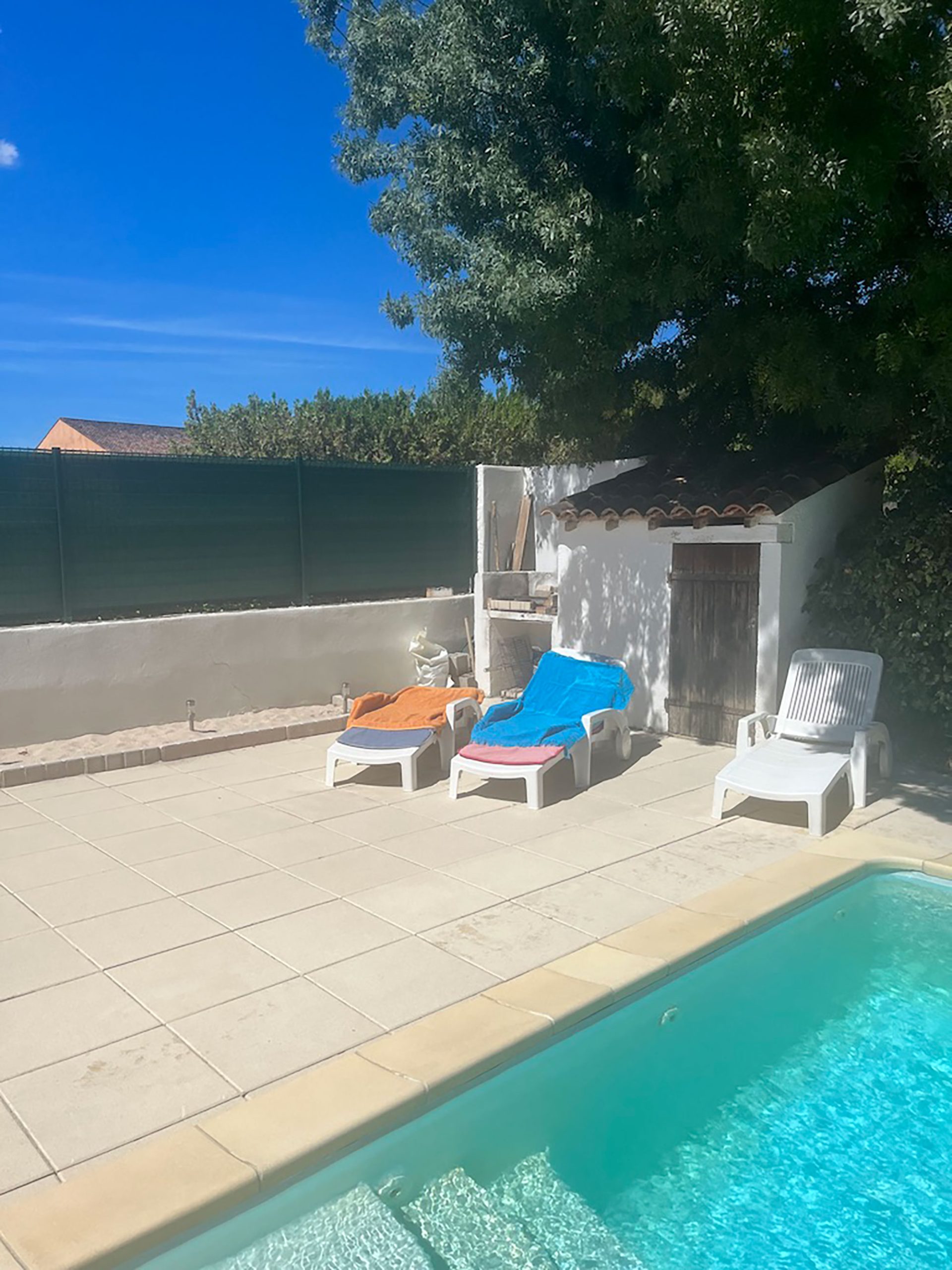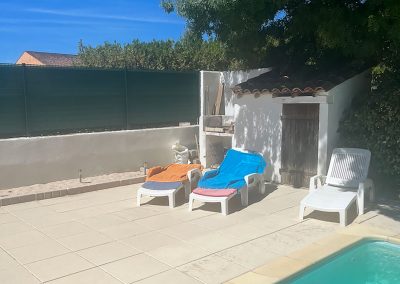 When I got married we held our wedding reception at the villa and 50 guests from UK flew over to have the most fantastic meal outdoors on the original wooden verandah that I built after purchasing the property in 2002! But in 2017, I completely remodelled the exterior to provide the most fabulous paved relaxation space around the pool which has it French pool fence system (mandatory in French Law) to provide the perfect holiday area for a family either with children or perhaps two couples sharing.