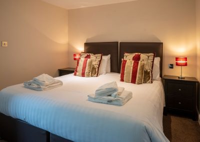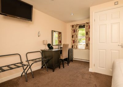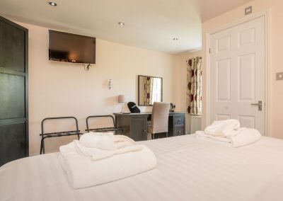 Once again it’s a Mattison Monarch 1400 in superking size and like the other superior rooms there is the option to have it as two full size singles. We can also fit a third single in here if you require it. All our standard facilities are there with 32” flat screen LED, a large desk and chair, tea and coffee making facilities with complimentary Border biscuits, a hairdryer, bedside tables with lamps and ceiling down-lighters throughout give the room a contemporary feel. The fluffy bath sheets complete the look.