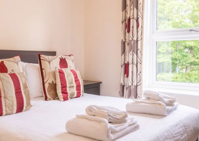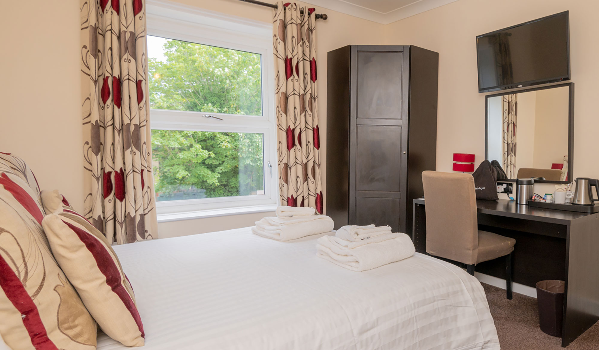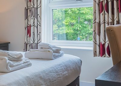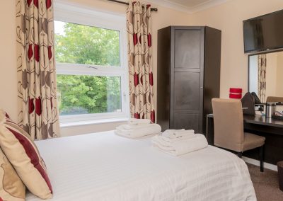 All rooms have flat screen tv, desk and desk tidy, chair, corner wardrobe, tea and coffee making facilities with complimentary Border biscuits, hairdryer, luggage stands as well as bed side tables The big feature of this room is the fantastic river view afforded from the bathroom window. A real delight and a totally private place to enjoy the scenery completely unseen! Both Rooms Two and Three are front facing but each have a view of the river either from the bedroom or bathroom.
