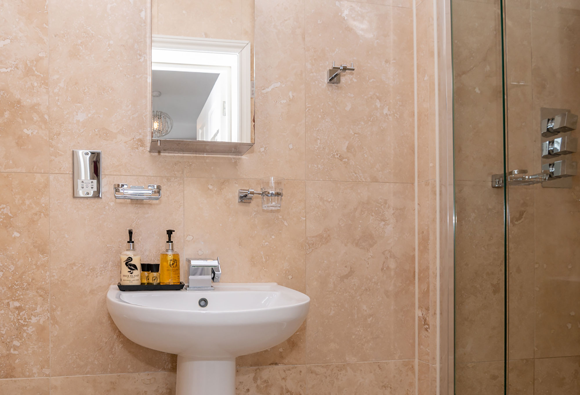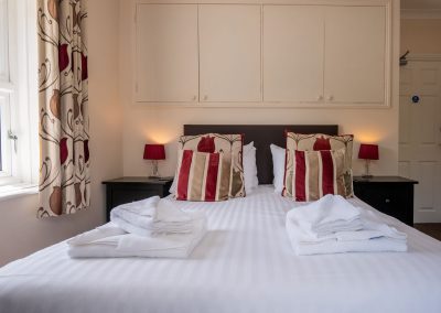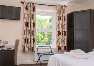 All the same facilities as you’d expect in all of our main hotel rooms are to be found from the travertine bathroom with tumbled floor, again with cubicle rainfall shower, to the Mattison Monarch 1400 kingsize bed. All rooms have flat screen tv, desk and desk tidy, chair, tea and coffee making facilities with complimentary Border biscuits, hairdryer, luggage stands as well as bed side tables and in room two a corner wardrobe to complete a modern stylish yet functional room for you to enjoy.