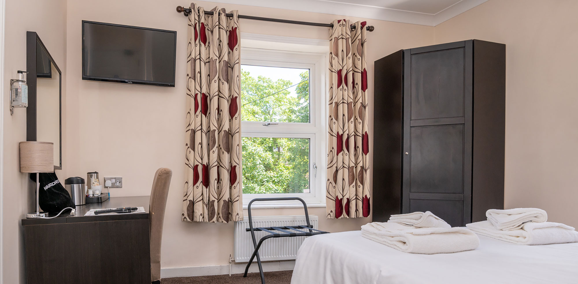 It has dual aspect views of both the river and the front side of the hotel and is priced to reflect the fact that it is one of our two rooms that are on the road side of the building.